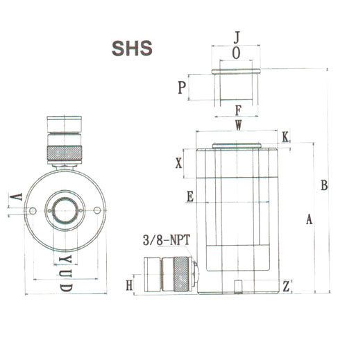 單作用中空式油缸-SHS系列規格:
