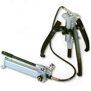 在液壓拉馬中主要包括兩步分,一個是拔輪用的拉馬,另一個是提供壓力的手動操作泵,我們在使用的時候,只需要將拉馬固定在車輪上,在上下扳動手動泵的操作手柄,這樣產生的拉力就能輕松的將車輪拔掉。